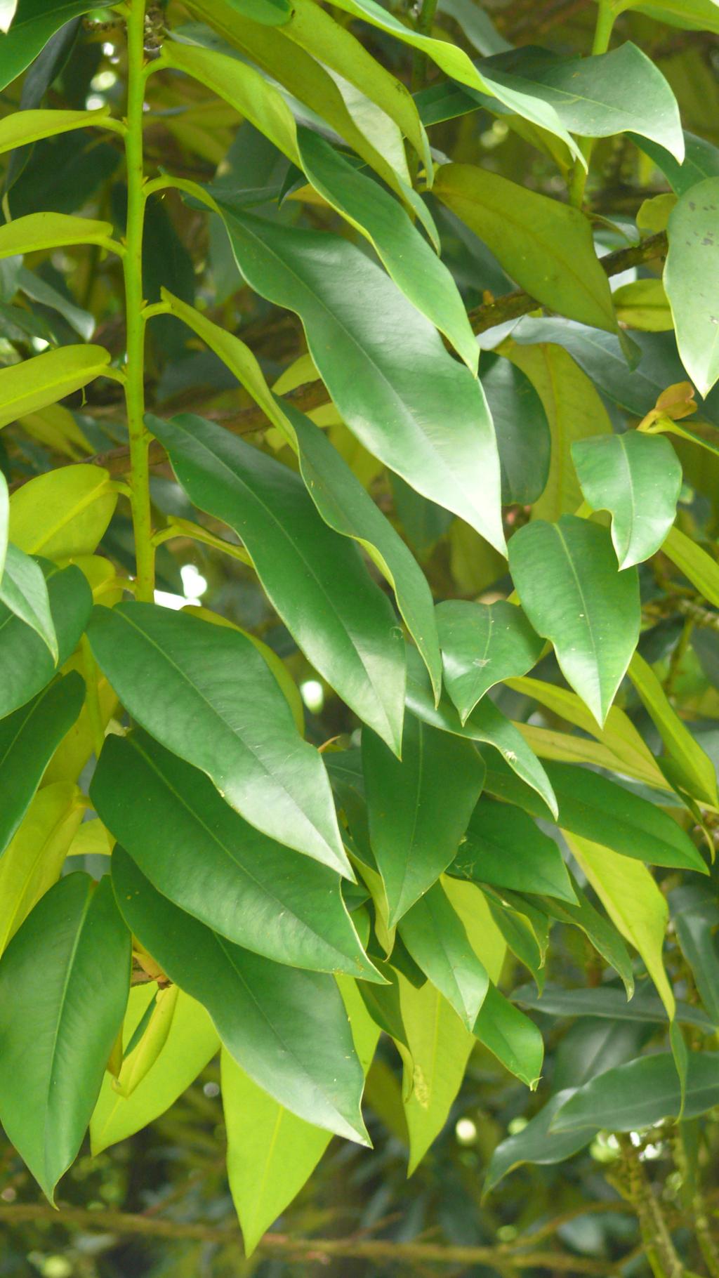 | 型態 | 常綠大喬木,高可達40公尺,胸高直徑80-100公分,樹冠近球形,樹幹通直;樹皮黑褐色或近黑色,粗糙,縱向縫裂且略呈鱗片狀剝落,皮孔暗褐色;小枝圓筒形,粗壯、嫩時綠色,有絹毛,後轉灰色,無毛。單葉,互生,常叢集枝梢,柄短而粗壯,初疏生長毛,後變無毛;葉片革質,披針形或長橢圓狀披針形,表面暗綠色,光亮無毛,背面淡綠色,幼時有絹毛或伏柔毛,後變粉綠色,無毛。花單性,雌雄異株,黃白色或淡綠色,芳香,常4數,花序腋生,密被絹毛,有苞片;漿果球形,略扁,密被軟毛,成熟時呈金黃褐色。種子腎狀橢圓形。 |