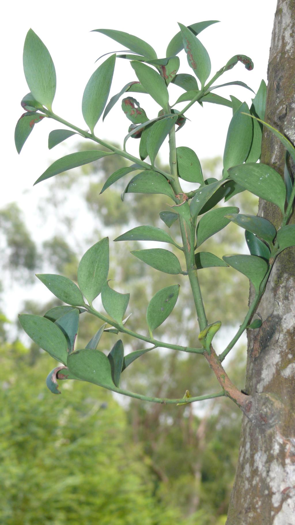 | 型態 | 常綠喬木,高可達30公尺,胸高直徑50公分;樹皮紅褐色或暗紫紅色,近平滑,小塊薄片脫落;枝條開展或平伸,樹冠廣圓錐形。單葉,對生或近對生,柄短或近無柄;葉片革質,長卵形、卵狀披針形或披針狀橢圓形。雌雄異株,雄球花穗狀圓柱形,單生葉腋,常呈分枝狀。種子核果狀,圓球形,成熟時假種皮暗紫色,有白粉。種子千粒重平均約300公克,1公斤平均有3,300粒潔淨種子。種子無休眠性,發芽日均溫需在20℃以上。 |