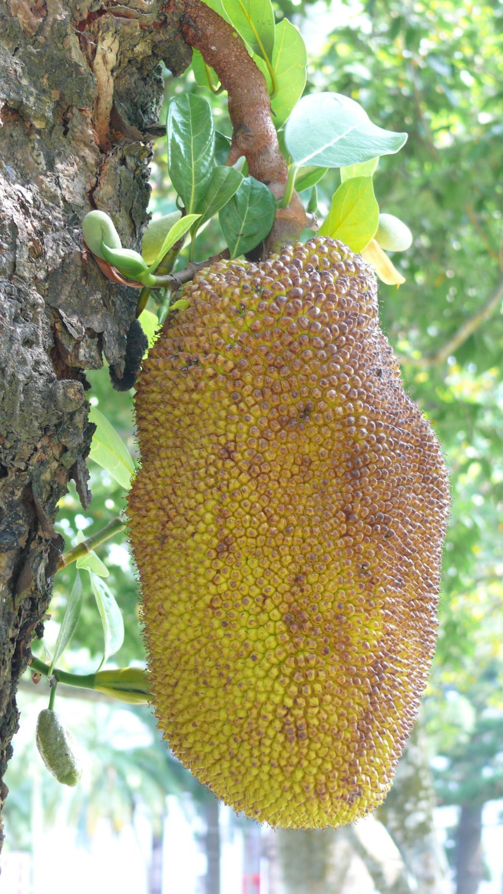 | 用途 | 庭植或作行道樹觀賞;果形大,為世界著名大型水果,肉質果肉,味甜,芳香;除生食外,可製果汁、果醬、罐頭和果乾;核果覆含澱粉,亦可煮食;木材黃色,可提取黃色素,在緬甸和泰國多作僧侶法衣染料;樹脂在婆羅洲,常用以黏捉小鳥。 |
