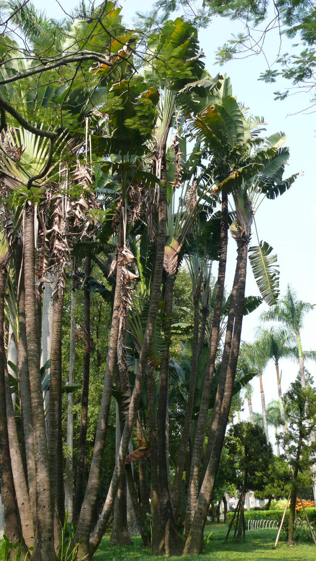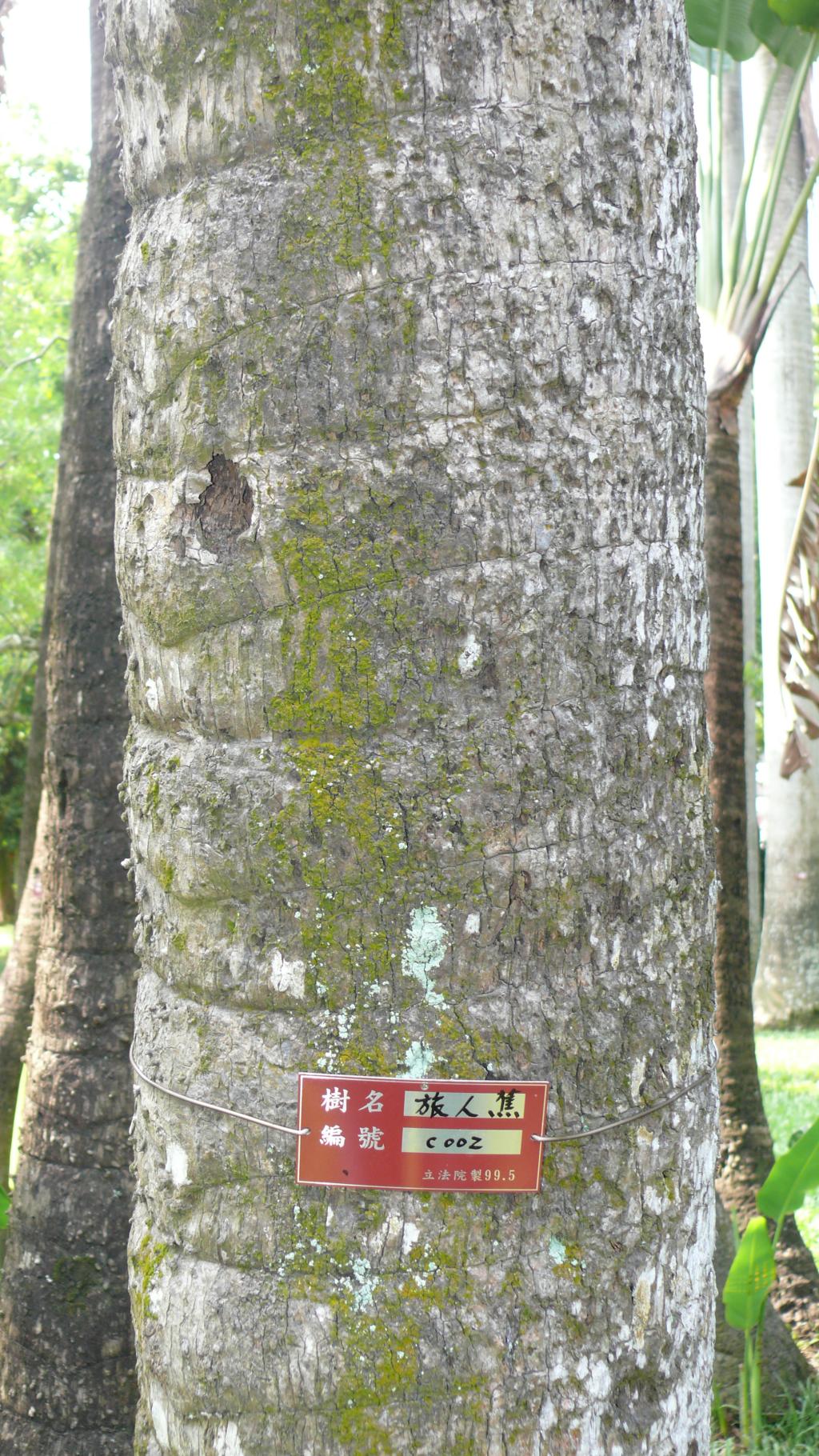 | 型態 | 棕櫚狀常綠喬木,一般高5—6公尺,莖幹通直,外表具明顯葉痕。葉2行排列於莖頂,折扇狀,柄長,具鞘,基部互抱,粗壯,表面有深溝,光滑無毛,綠黃色;葉片革質,長橢圓形,表面深綠有光澤,背面顏色稍淺,中肋粗壯,表面凹下成淺溝,背面顯著隆起,側脈近平行,直達葉邊,全緣,偶稍呈波狀。蝎尾狀聚繖花序腋生,較葉柄為短,由10—12個呈2行排列於花序軸上的佛燄苞組成;佛燄苞大型,內有花5—12朵,花兩性,在佛燄苞內排成蠍尾狀聚繖花序,萼片3枚,披針形,革質;花瓣亦3枚,與萼片相似;雄蕊6枚,線形,花藥線形,長為花絲之2倍;雌蕊子房壓扁狀。蒴果木質,成熟時室背3瓣裂;種子腎形,被碧藍色,撕裂狀假種皮。 |