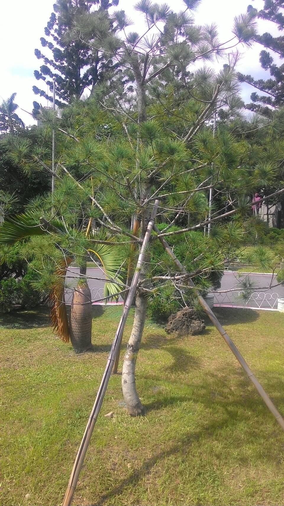 | 型態 | 大喬木。松樹的樹皮在樹齡約在 20 年後開始出現龜甲狀之裂紋,越老越明顯。常綠大喬木,高達 30 公尺,胸徑 1.2 公尺。 樹皮暗灰色,鱗狀開裂。 大枝近平展或微向上展,樹冠圓錐形。毬果卵狀橢圓形,長 10 公分,徑 4 公分;果鱗頂端向外彎曲;中部種鱗楔狀橢圓形,長 3~3.5 公分,寬 1.5~2 公分,鱗盾禾稈色,有光澤,扁菱形,中部較厚,邊緣較薄,先端較鈍而厚,上部邊緣銳利與鱗臍微向外彎;種子橢圓狀卵圓形或長卵圓形,長 0.8~1 公分,徑 0.5~0.6 公分,種翅淡褐色,長 1.5~2 公分,寬 0.5~0.8 公分。松樹類的毬果是松鼠囤積糧食的來源之一。 |