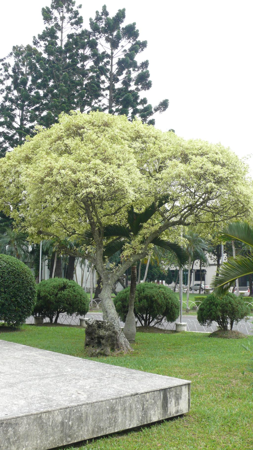 | 型態 | 常綠喬木,高可達45公尺,胸高直徑40-125公分,樹幹通直,樹皮灰綠色或灰褐色,多分枝,枝條輪生,具乳汁,無毛。單葉,葉片薄至厚革質,倒卵狀長圓形、倒披針形或匙形,頂端圓、鈍或微凹,基部楔形,全緣,表面光澤綠色,背面淡綠色,兩面均光滑無毛;中肋於表面略凹下而於背面隆起,側脈30-50對,平行,表面平而於背面凸起。聚繖狀圓錐花序頂生或於枝條先端腋生,淡綠色或黃綠色,具香味;花冠高腳碟狀,基部光滑無毛,往上則密生毛茸;花喉略緊縮狀,先端5裂,裂片歪倒卵形或圓形,表裡兩面均密布柔毛,花柱絲狀,柱頭棍棒狀,頂端2深裂。蓇葖果細線形,下垂,外果皮近革質,灰白色;種子長圓形,紅棕色,兩端被紅棕色長緣毛。 |