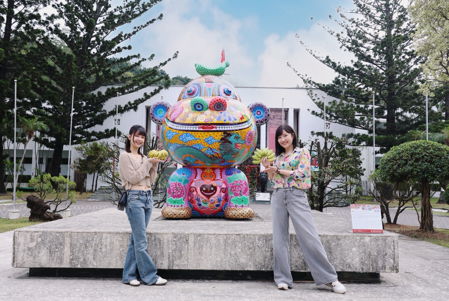 With his playful and humorous style, Hung Yi combines the monkey and its beloved banana. In Taiwanese, the wordplay hou-kau-sim sounds like “to have a good heart-to-heart,” symbolizing sincerity, trust, and open dialogue. This echoes the history of Wufeng Assembly Affairs Park, once home to the Taiwan Provincial Assembly, where local representatives debated, exchanged views, and built consensus.
